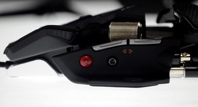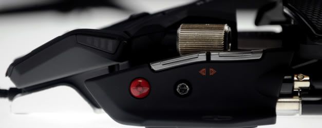 First, the standard stuff: The R.A.T.7 has a 5600 DPI laser sensor that’s exactly as precise (or imprecise) as you need it to be. The sensitivity can be adjusted on the fly (cycling between four customizable sensitivity levels), using a two-way switch located behind the wheel, and a red LED meter next to the profile button shows the current sensitivity setting.